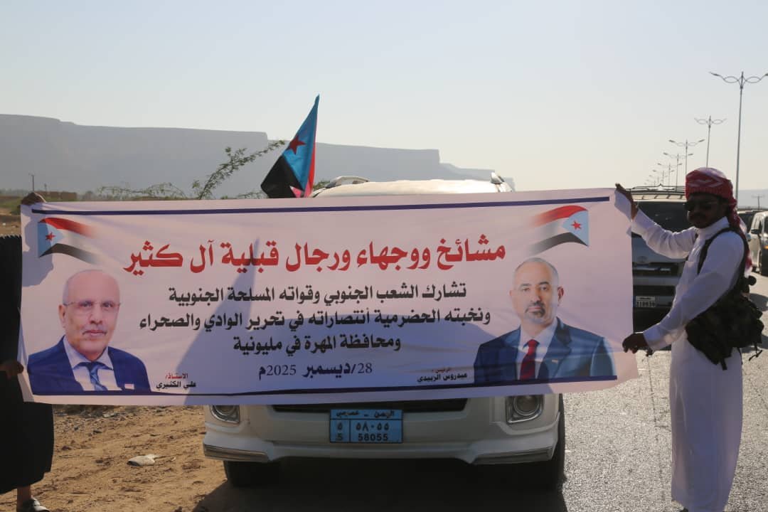 مشائخ ووجهاء قبائل آل كثير يشاركون شعب الجنوب احتفالاته بالانتصارات ويؤيدون قرارات الرئيس الزُبيدي