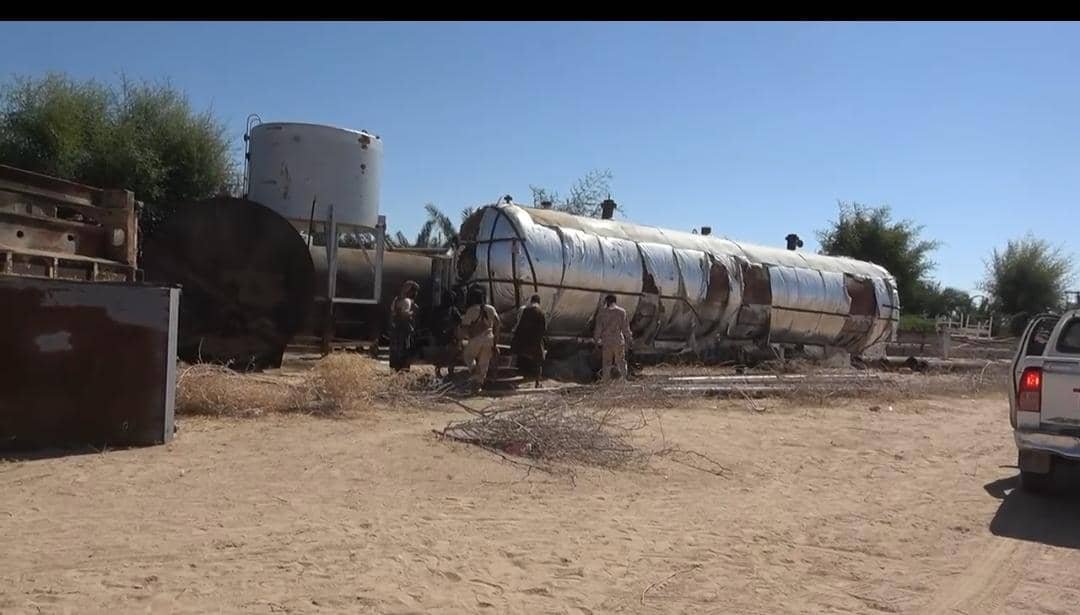 القوات المسلحة الجنوبية تضبط مصفاة غير قانونية لنهب النفط داخل مزرعة متنفذ شمالي في الخشعة