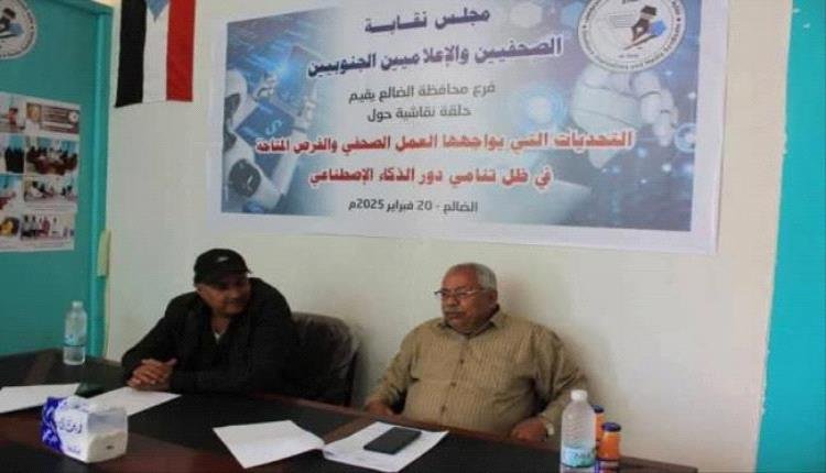 الضالع..نقابة الصحفيين الجنوبيين تنظم حلقة نقاشية حول التحديات التي تواجه العمل الصحفي في ظل تنامي الذكاء الاصطناعي