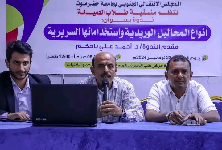 منسقية كلية الصيدلية بجامعة حضرموت تنظم ندوة صحية بعنوان "أنواع المحاليل الوريدية واستخداماتها".