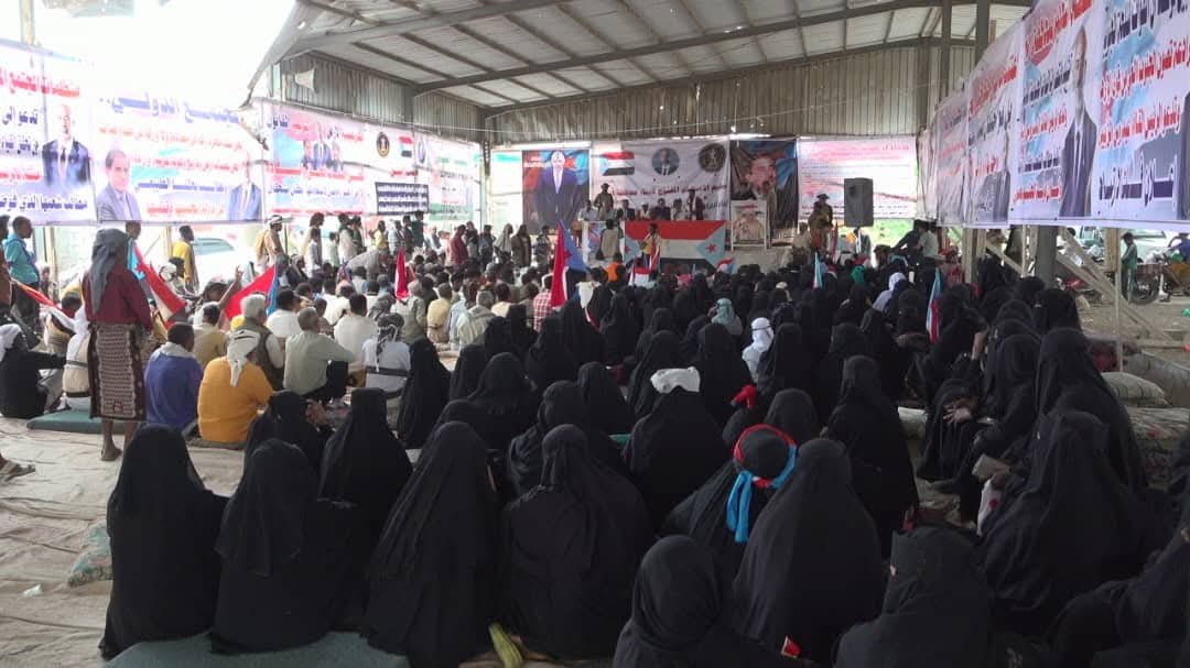 توافد جماهيري حاشد إلى ساحة الاعتصام بالمنطقة الوسطى في أبين