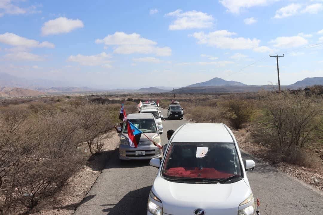 مواكب جماهيرية من أبناء باكازم وأحور والمحفد بمحافظة أبين تتجه إلى ساحة العروض بالعاصمة عدن لدعم خطوات الانتقالي لإعلان دولة الجنوب