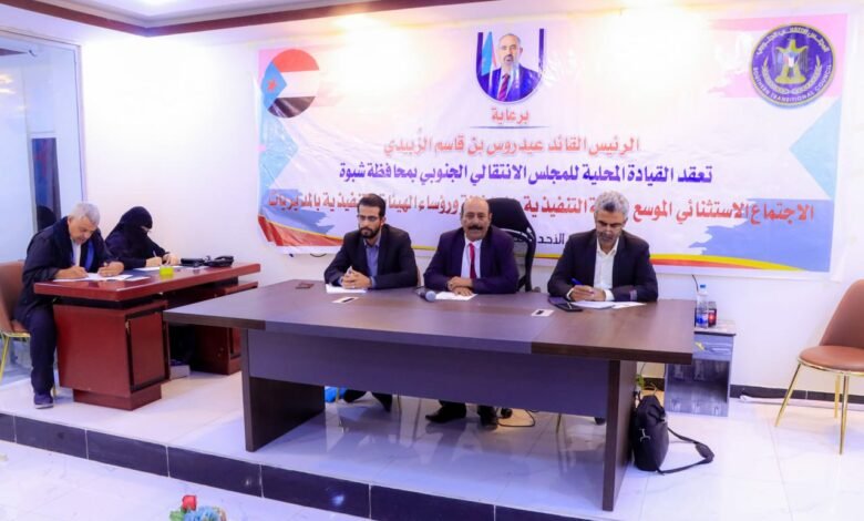 انتقالي شبوة يعقد اجتماعًا استثنائيًا للهيئة التنفيذية بالمحافظة ورؤساء الهيئات بالمديريات