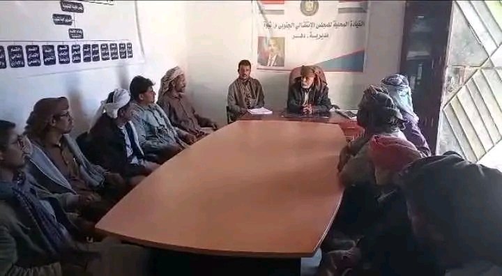 فريق التواصل يعقد لقاءً موسعًا مع قيادات الانتقالي والسلطة المحلية وشخصيات قبلية واجتماعية في مديريتي أحور والمحفد.