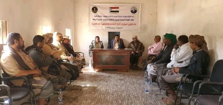 انتقالي الروضة ينظم لقاءً تشاوريًا لمسؤولي الشؤون الاجتماعية والجماهيريه باللجان المحلية بمراكز المديرية.