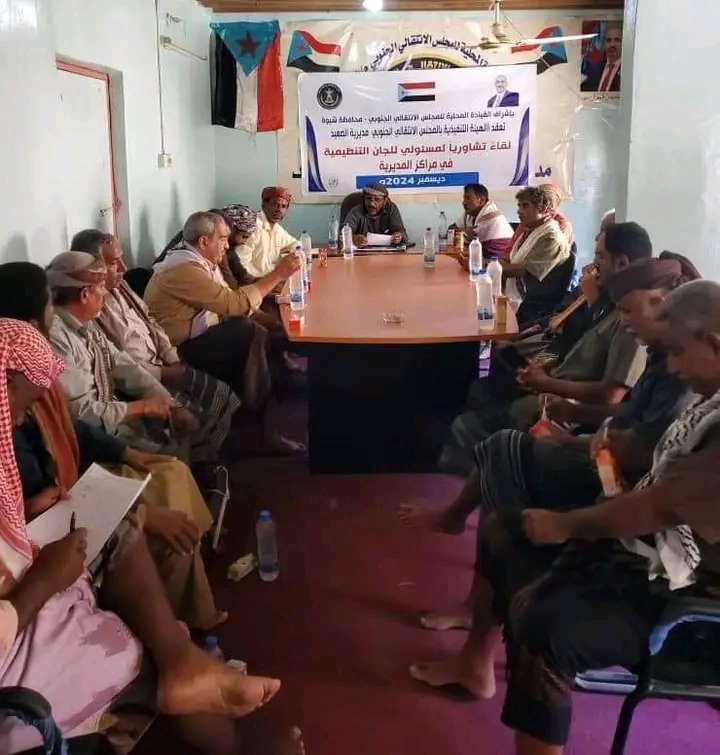 انتقالي عتق يعقد لقاءً تشاوريًا لمسؤولي الشؤون التنظيمية باللجان المحلية بمراكز المديرية.