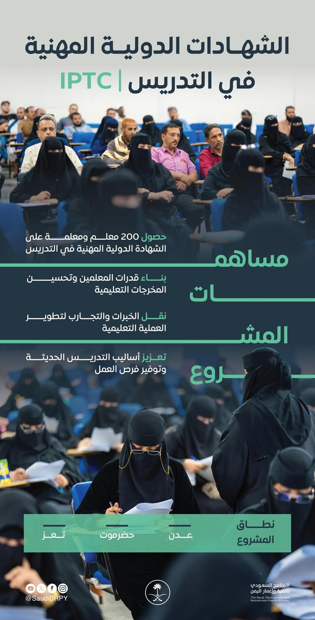 البرنامج السعودي يدعم تأهيل المعلمين بشهادات دولية في عدن وحضرموت وتعز.