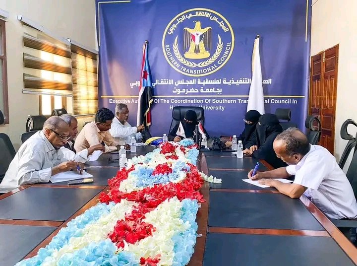 منسقية الانتقالي بجامعة حضرموت تعقد لقاءً برؤساء ونواب الهيئات التنفيذية للمنسقيات في الكليات.