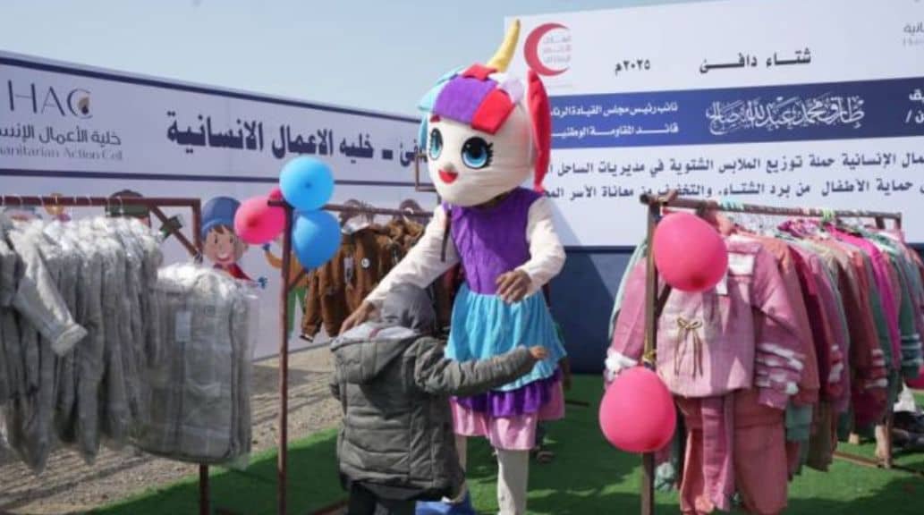 بدعم اماراتي .... خلية الأعمال الإنسانية تدشّن حملة شتوية لتوزيع الملابس على الأسر الفقيرة.