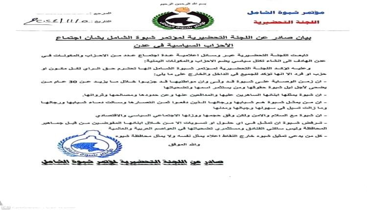 بيان صادر عن اللجنة التحضيرية للمؤتمر #شبوة الشامل