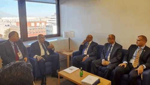 محافظ البنك المركزي ووزير المالية يلتقيان المدير التنفيذي للمجموعة العربية والمالديف في صندوق النقد الدولي.