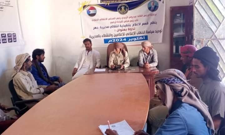 انتقالي دهر ينظم ندوة توعوية حول توحيد الخطاب الإعلامي للإعلاميين والناشطين بالمديرية.