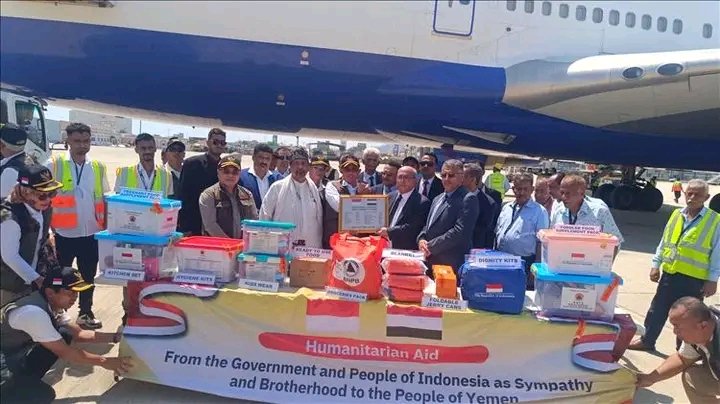 وزير الإدارة المحلية ونائب محافظ عدن يستقبلان الوفد الاندونيسي ويتسلمان شحنة المساعدات الإغاثية.