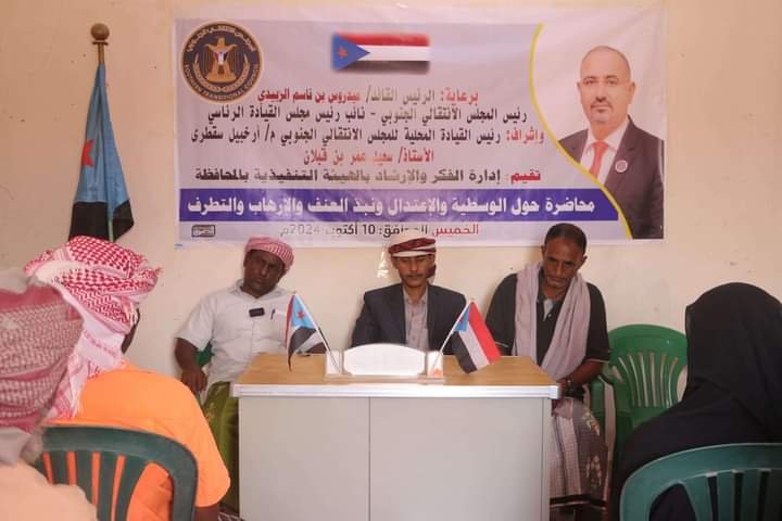 انتقالي سقطرى ينظم محاضرة حول الوسطية والاعتدال ونبذ العنف والإرهاب والتطرف.