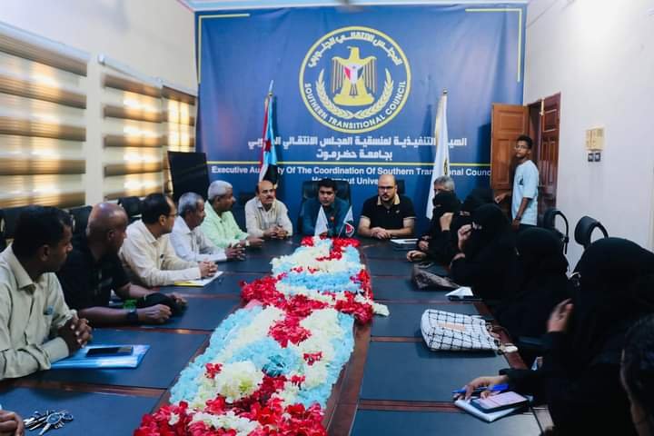 رئيس تنفيذية انتقالي حضرموت يناقش مع منسقية جامعة حضرموت سير التحضيرات لمليونية سيئون.