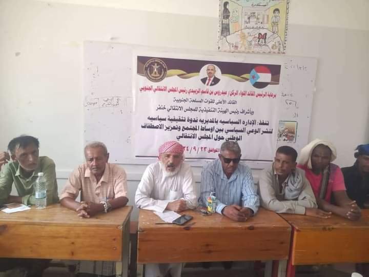 انتقالي خنفر ينظم ندوة بعنوان "نشر الوعي السياسي وتعزيز الاصطفاف الوطني الجنوبي".