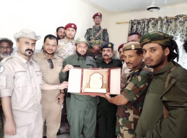 صف ضباط وأفراد اللواء الرابع دعم وإسناد يكرمون العميد ناصر الشوحطي مدير امن لحج.
