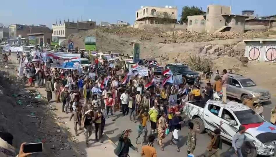 توافد جماهيري واسع من أبناء حجر وزبيد ومريس إلى مخيم الاعتصام المفتوح بالضالع
