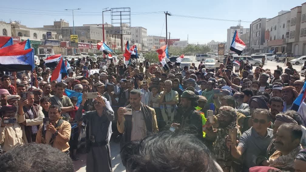 وصول وفود جماهيرية من حبان ورضوم ودهر إلى ساحة الاعتصام المفتوح في عتق بشبوة
