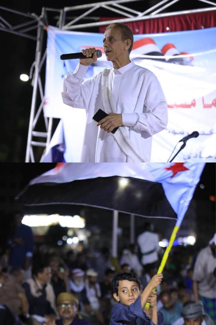 نائب وزير المياه والبيئة وعدد من نواب الحكومة يشاركون جماهير شعب الجنوب العربي بساحة العروض بخور مكسر