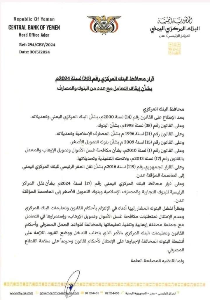 البنك المركزي اليمني في عدن ..... يدعوا كافة الأفراد والمحلات التجارية والشركات والجهات الأخرى والمؤسسات المالية والمصرفية ممن يحتفظون بنقود ورقية من الطبعة القديمة تسليمها إلى البنك.