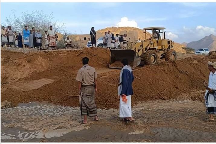 بإشراف مكتب الأشغال العامة وتمويل صندوق صيانة الطرق البدء برفع مخلفات وفتح الطرقات في مديرية عسيلان.