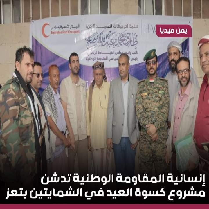 الخلية الإنسانية في المقاومة الوطنية تدشن مشروع "كسوة العيد" في مديرية الشمايتين بمحافظة تعز.