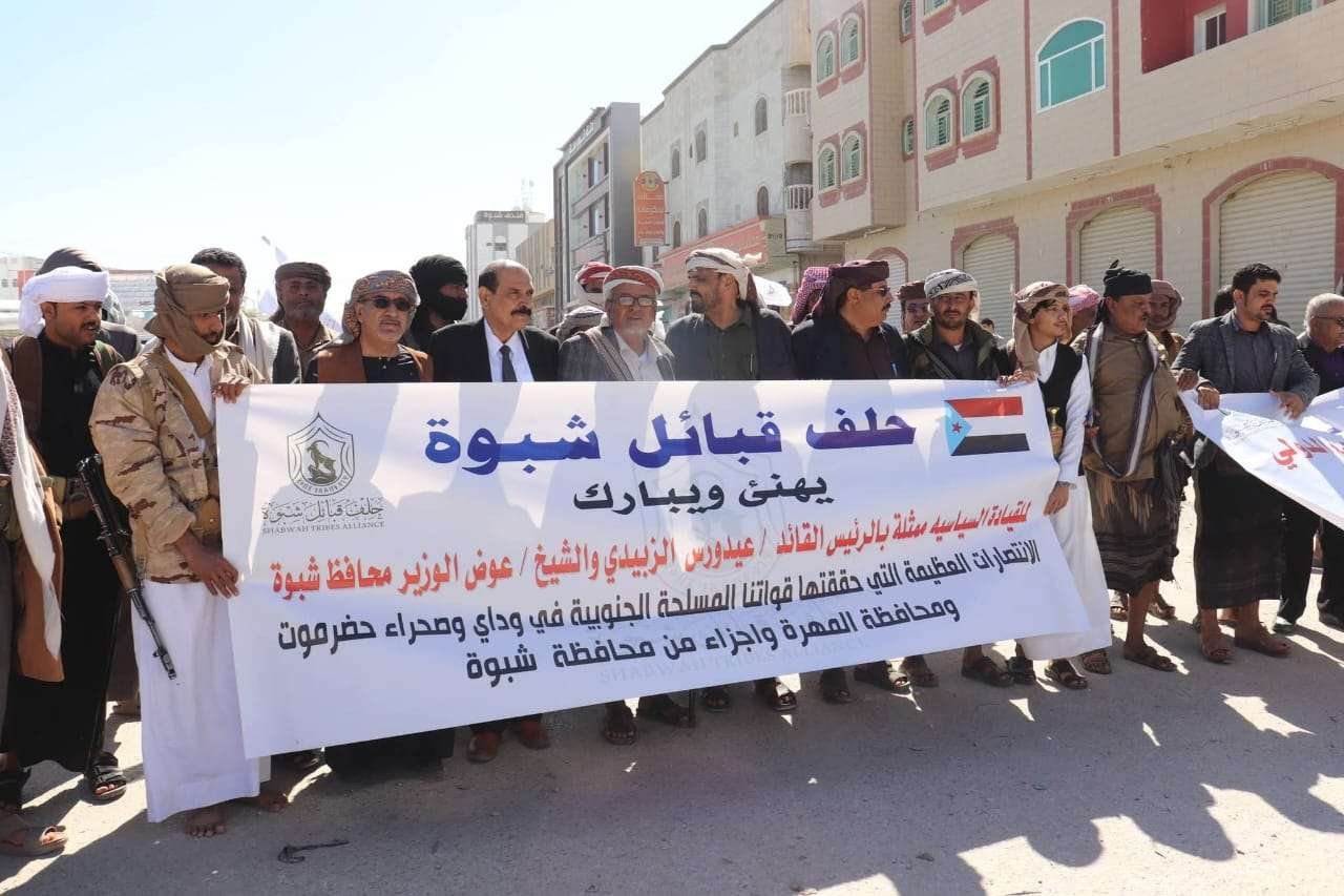 مخيم الاعتصام المفتوح في عتق يستقبل وفدًا من حلف قبائل شبوة ومسؤولي السلطة المحلية بالمحافظة