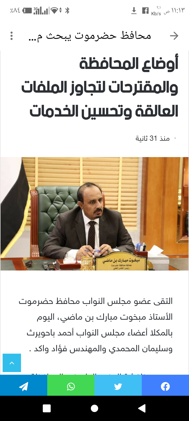 محافظ حضرموت يبحث مع أعضاء الكتلة البرلمانية أوضاع المحافظة والمقترحات لتجاوز الملفات العالقة وتحسين الخدمات.