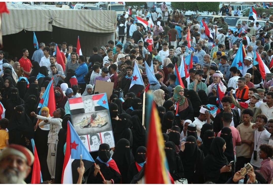 استجابة لدعوة انتقالي العاصمة.. احتشاد جماهيري واعتصام شعبي بعدن يطالب إعلان دولة الجنوب العربي
