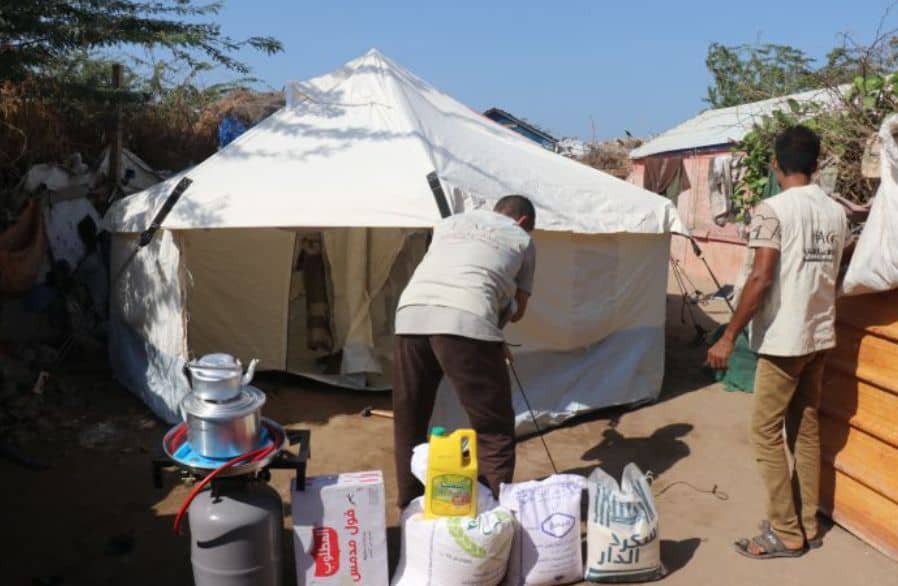 خلية الأعمال الإنسانية تقدم مساعدات طارئة لأسرة نازحة توفي طفلها من البرد .
