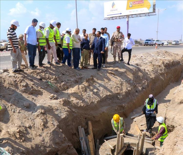 فرق صيانة مؤسسة مياه عدن تباشر إصلاح كسر في خط ضخ رئيسي بجولة كالتكس