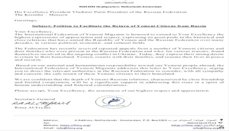 اتحاد المهاجرين اليمنيين يناشد روسيا إعادة العالقين من جبهات القتال