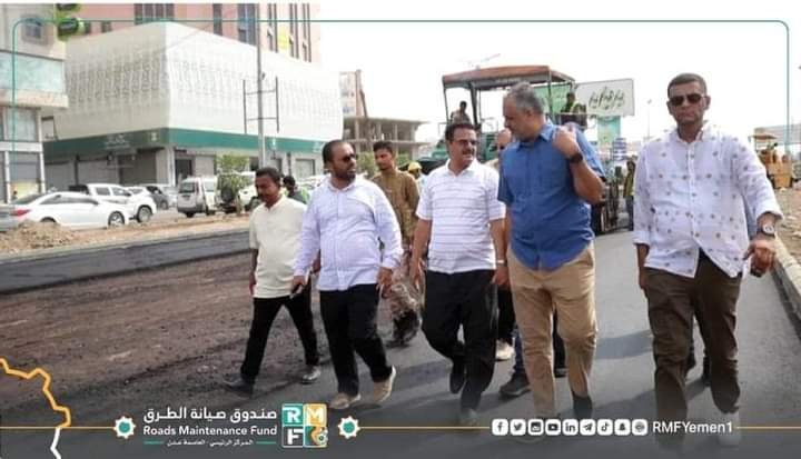 الماس يطلع على أعمال سفلتة الجهة اليسار من طريق السفينة ـ الكثيري في عدن.