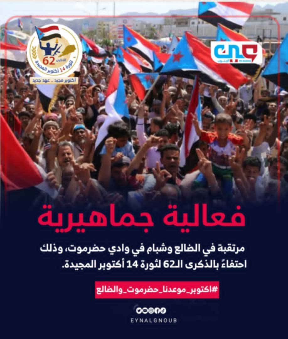 “الجنوب ينتفض بروح 14 أكتوبر.. والوعد حضرموت والضالع”