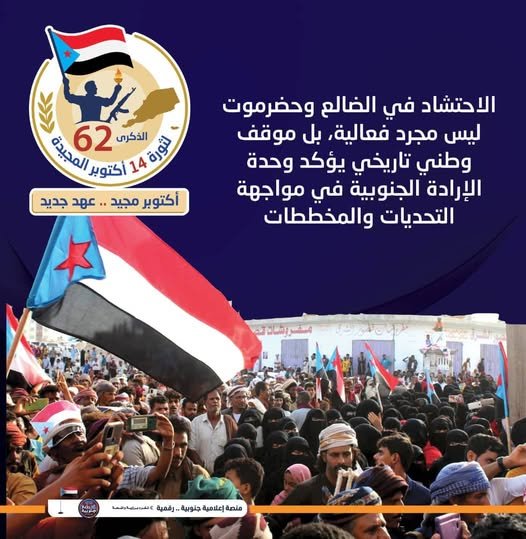 دعوة للجنوبيين للاحتفال بذكرى الـ62 لثورة 14 أكتوبر المجيدة…