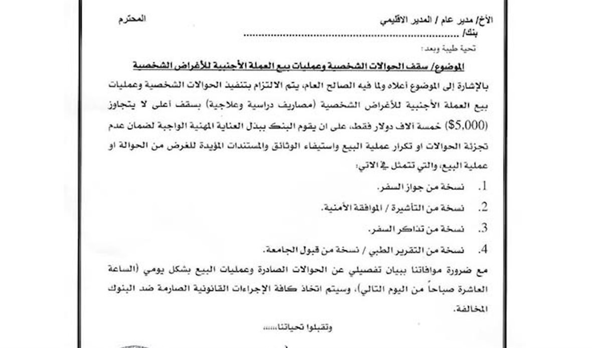 البنك المركزي يحدد سقف الحوالات وبيع العملة الأجنبية للأغراض الشخصية