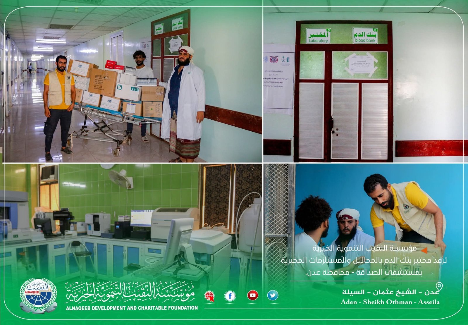 مؤسسة النقيب التنموية الخيرية ترفد مختبر بنك الدم بمستشفى الصداقة بالمحاليل والمستلزمات المخبرية.