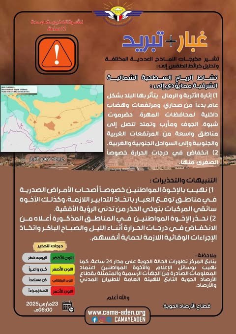 الأرصاد تحذر من موجة غبار واسعة وانخفاض في درجة الحرارة ومستوى الرؤية في عدة محافظات