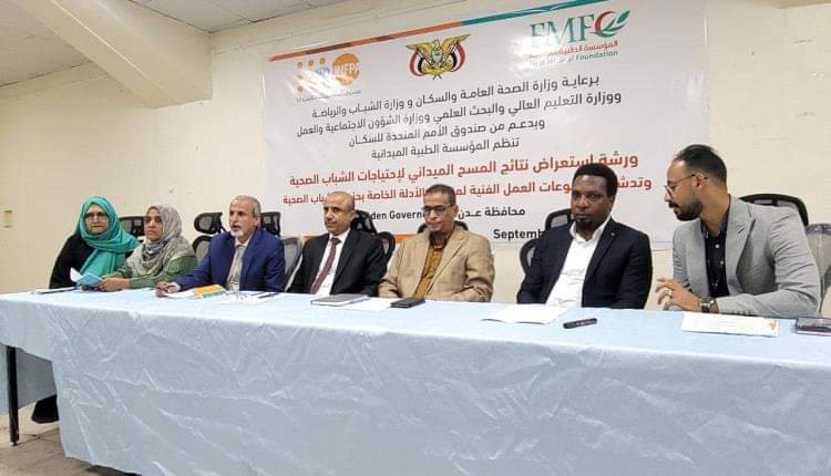 الدكتور سالم الشبحي يفتتح ورشة أستعراض نتائج المسح الميداني لإحتياجات الشباب الصحية.