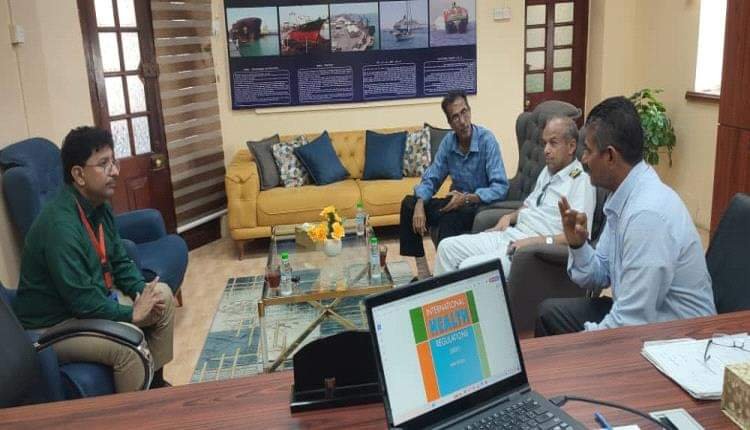 مناقشة سبل التعاون المشترك في تعزيز خدمة عيادة صحة الموانئ بمطار عدن الدولي.