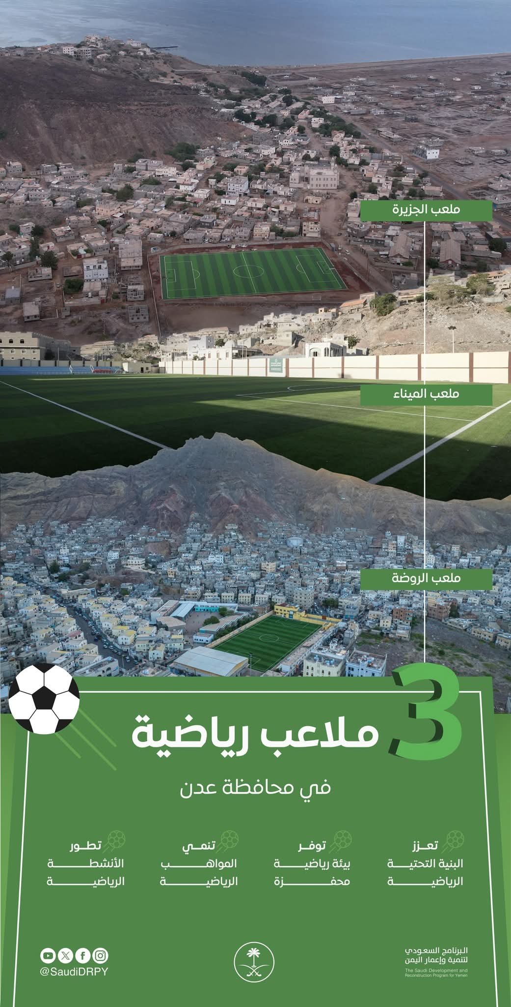 البرنامج السعودي يفتتح ثلاثة ملاعب رياضية جديدة في عدن.