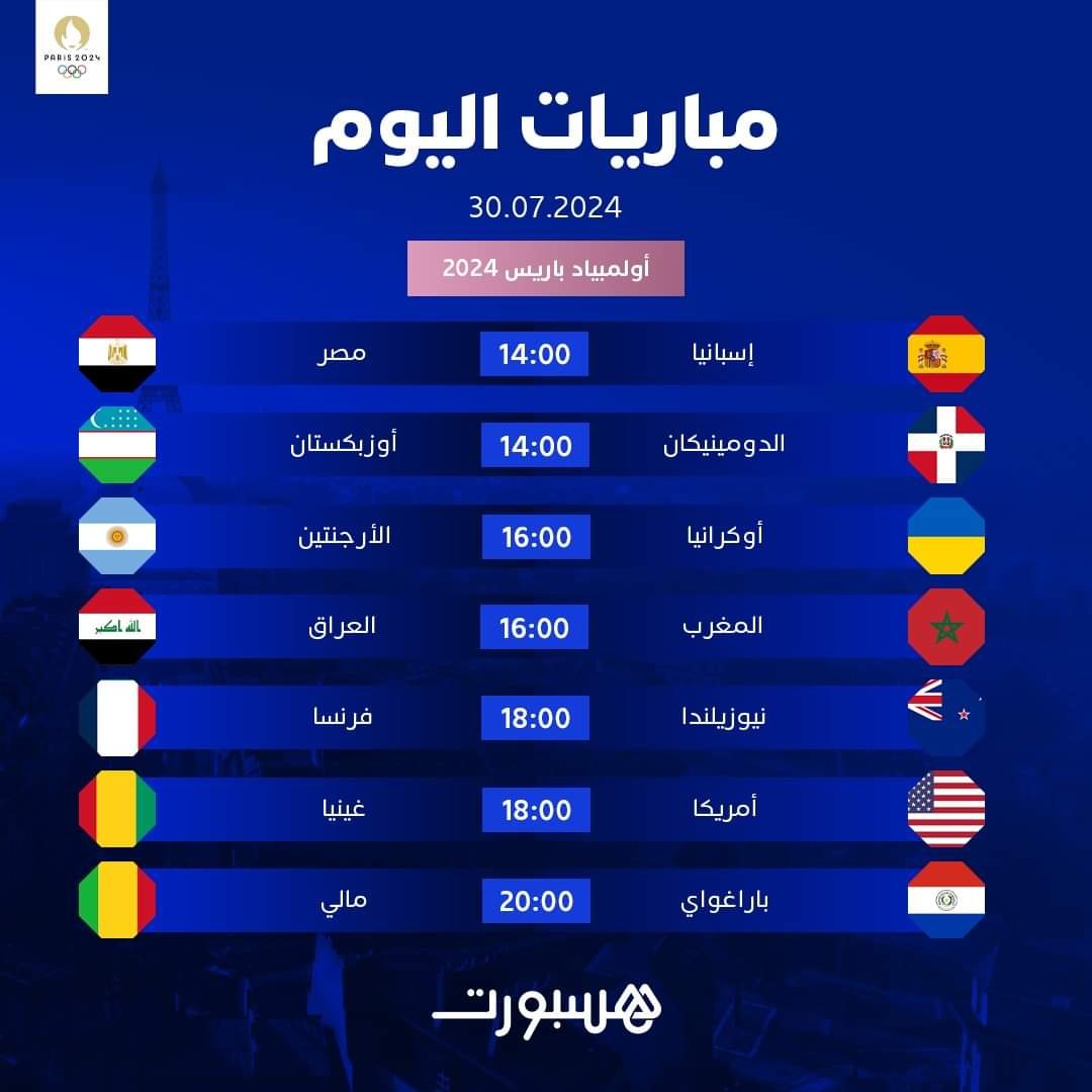إليكم برنامج مباريات كرة القدم اليوم في أولمبياد باريس 2024⚽️🥇