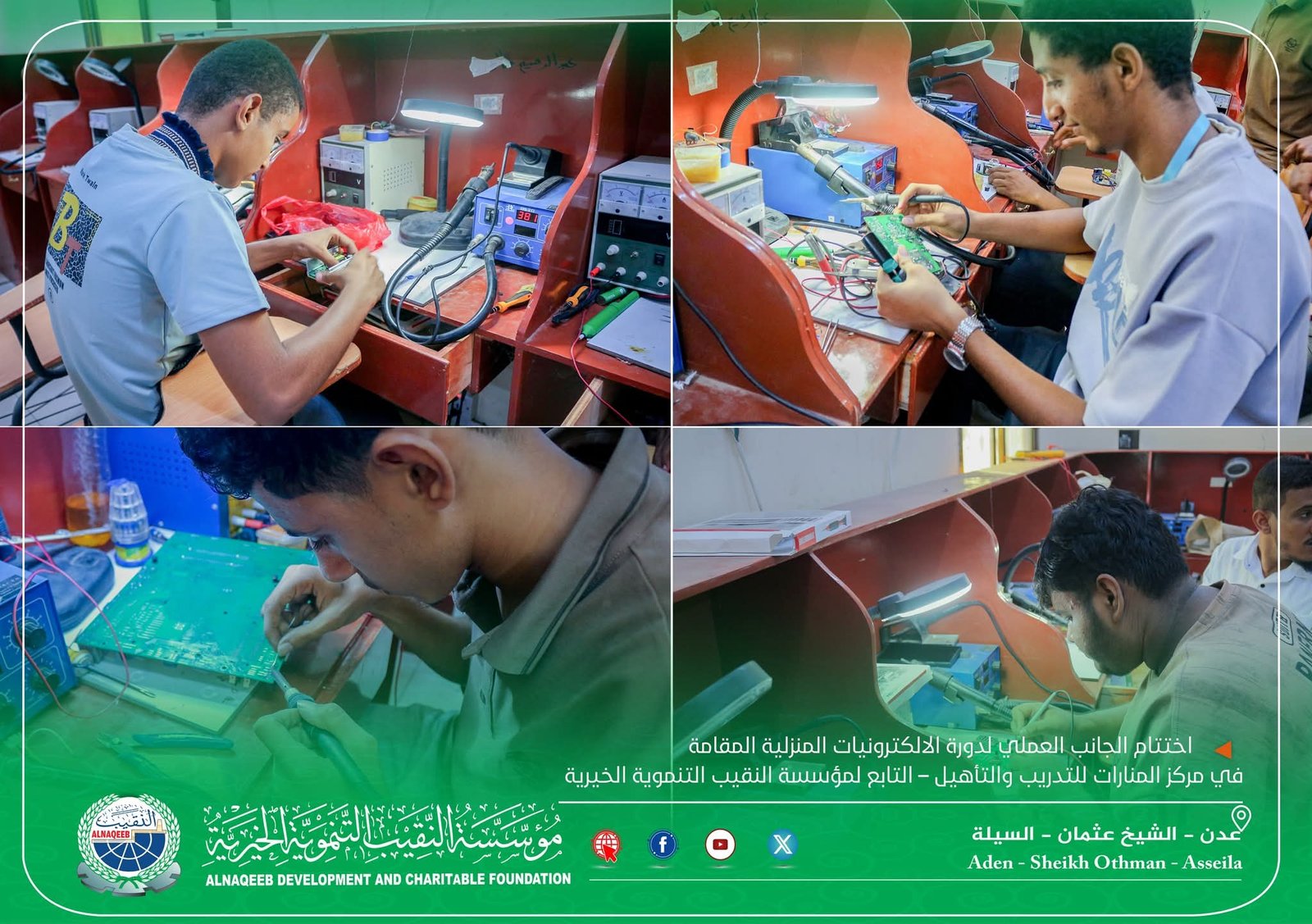 بأثر ملموس ونجاح مشهود اختتام دورة الإلكترونيات المنزلية المقامة في مركز المنارات للتدريب والتأهيل التابع لمؤسسة النقيب التنموية الخيرية.