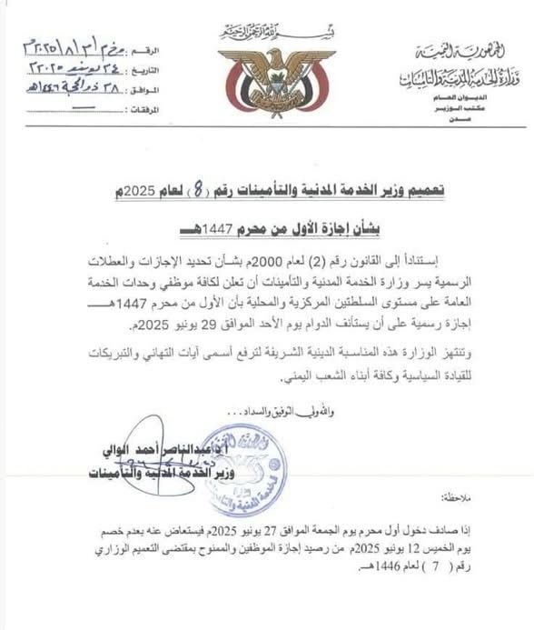 تعميم وزارة الخدمة المدنية بشأن إجازة الأول من محرم