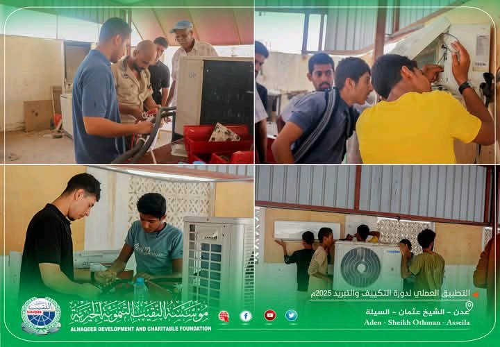 استئناف دورة التكييف والتبريد المقامة في مركز المنارات للتدريب والتأهيل التابع لمؤسسة النقيب التنموية الخيرية.