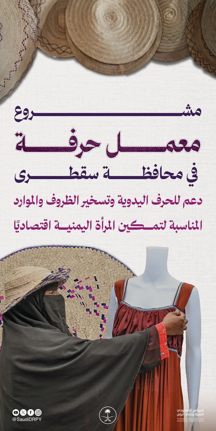بدعم من البرنامج السعودي لتنمية وإعمار اليمن.. مشروع "معمل حرفة" في سقطرى لدعم المرأة اليمنية والحرف اليدوية