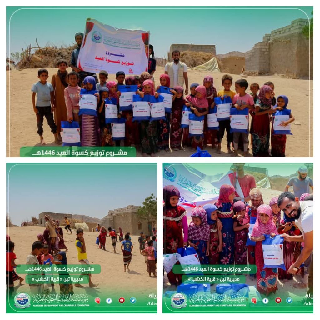 مؤسسة النقيب التنموية الخيرية ترسم الفرحة والبهجة على قلوب الأطفال بمشروع كسوة العيد في محافظة لحج - مديرية تبن.