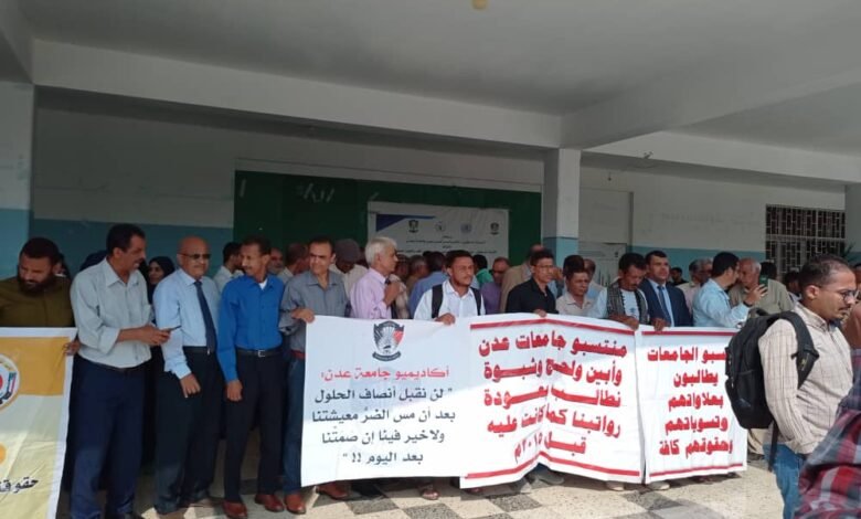 نقابات جامعات عدن ولحج وأبين وشبوة: التصعيد سيظل مستمرًا حتى تحقيق كافة المطالب