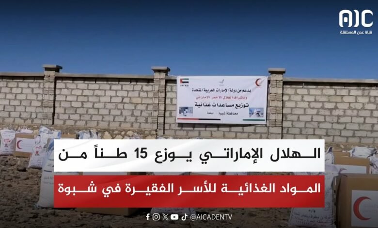 الهلال الإماراتي يوزع 15 طناً من المواد الغذائية للأسر الفقيرة في ميفعة بشبوة